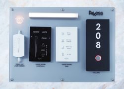Our Electronic Do-Not-Disturb Systems are incorporated into our custom room number signs that display if PRIVACY or SERVICE has been selected. The doorbell button will glow red if the guest has requested PRIVACY, green for SERVICE or default to white.